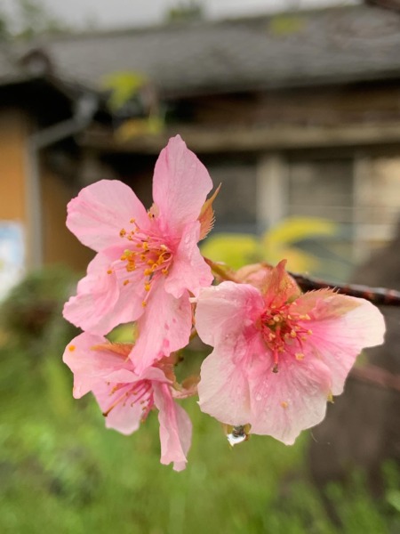 雨に濡れた河津桜